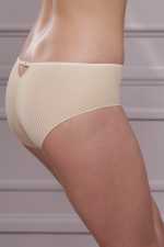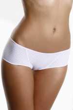Bokserki wykonane w całości z miękkiej i delikatnej dzianiny prążkowanej. Fantazyjne zestawienie ażurowego wzoru prążków oraz rozcięcie na tyle. Gładkie i niewidoczne pod obcisła odzieżą. Miękkie i płaskie obszywki w nogawkach. Wkładka bawełniana zapewniająca wygodę noszenia.